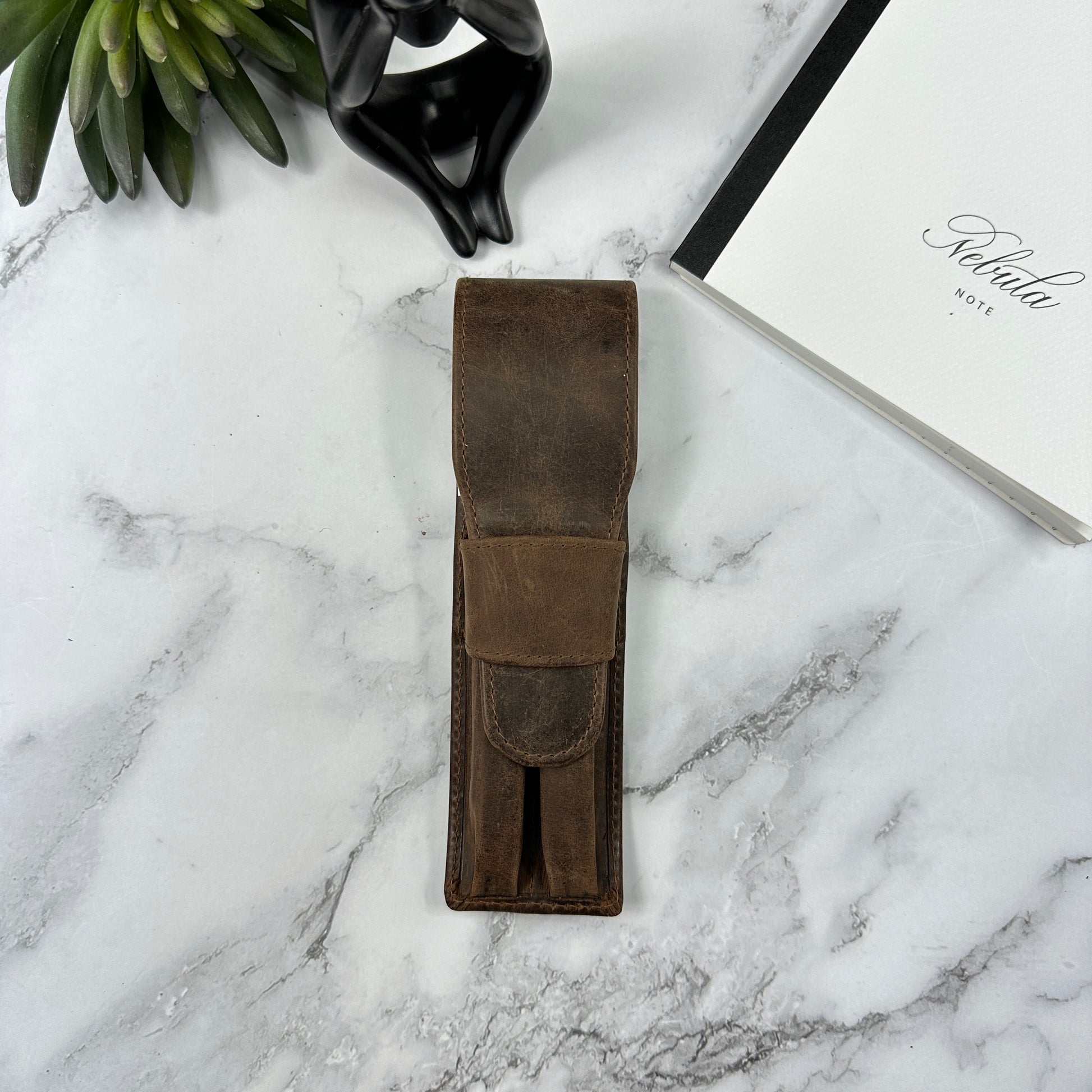 Découvrez la quintessence de la protection des stylos avec l'étui Girologio 2 Pen – méticuleusement conçu pour accueillir 2 stylos avec une élégance inégalée. La conception réfléchie comprend un mécanisme de fermeture à rabat et boucle pratique, garantissant que votre stylo reste bien en place. Cet étui, fabriqué en cuir durable, est conçu pour accueillir des stylos plus longs et plus larges avec la plus grande sécurité.