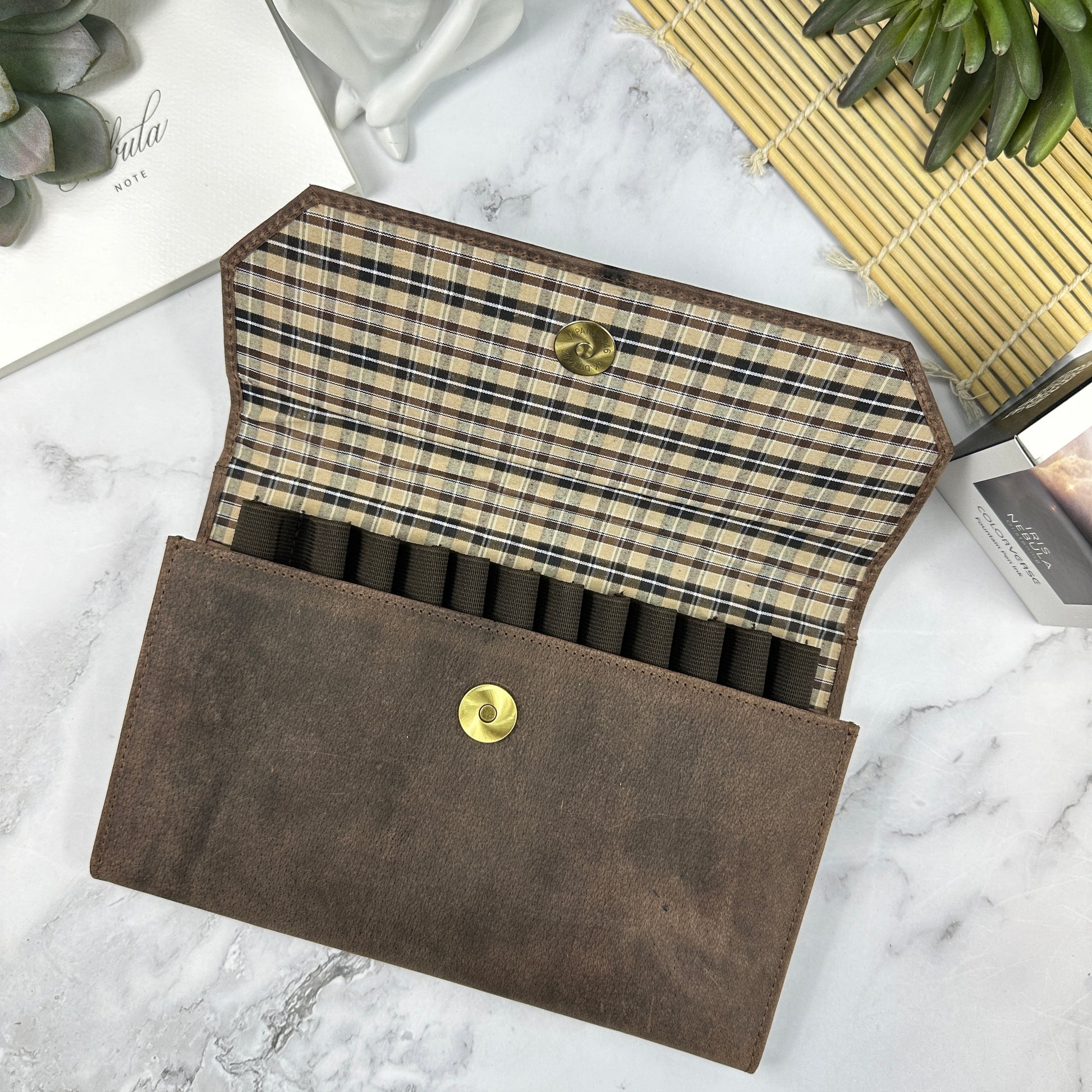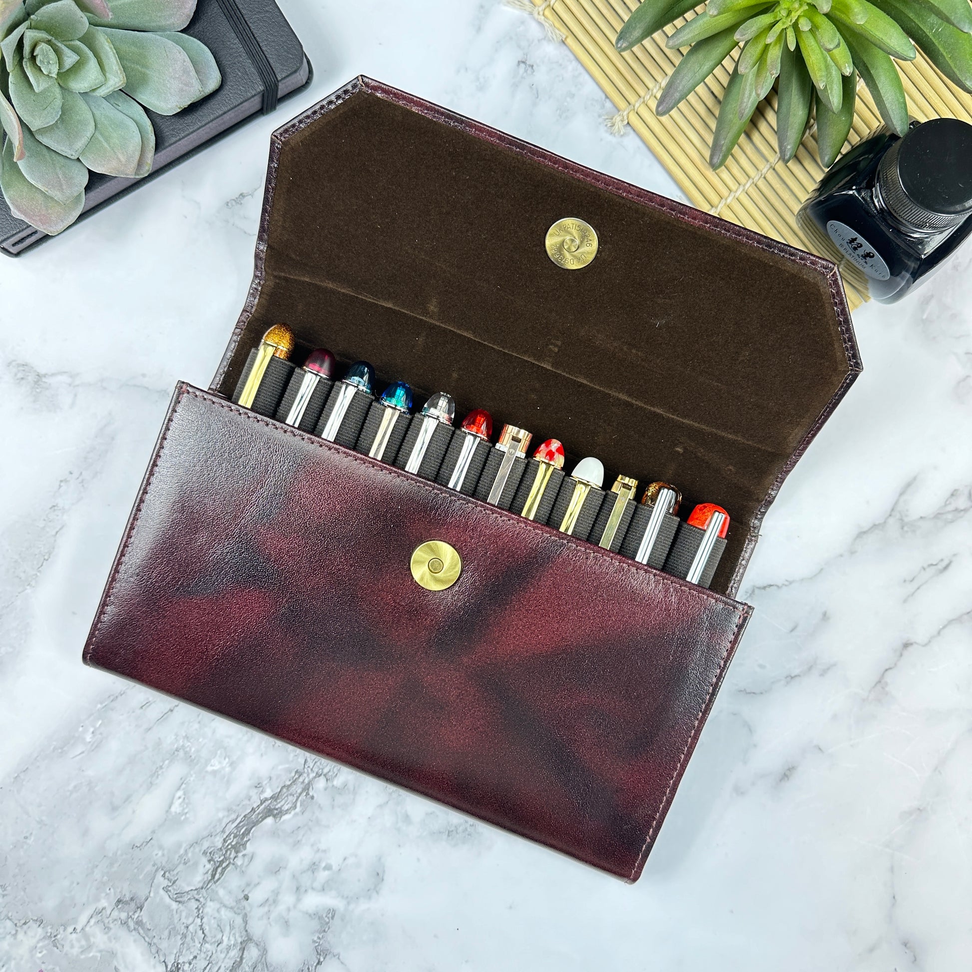 Beyond its protective prowess, the Penfolio's stylish and practical design ensures quick access to all 12 pens at a glance – just lift the snap closure flap for a visual treat. Its slim portfolio design adds to its allure, making it the preferred choice for pen enthusiasts on the move, fitting seamlessly into purses, briefcases, laptop bags, and more.