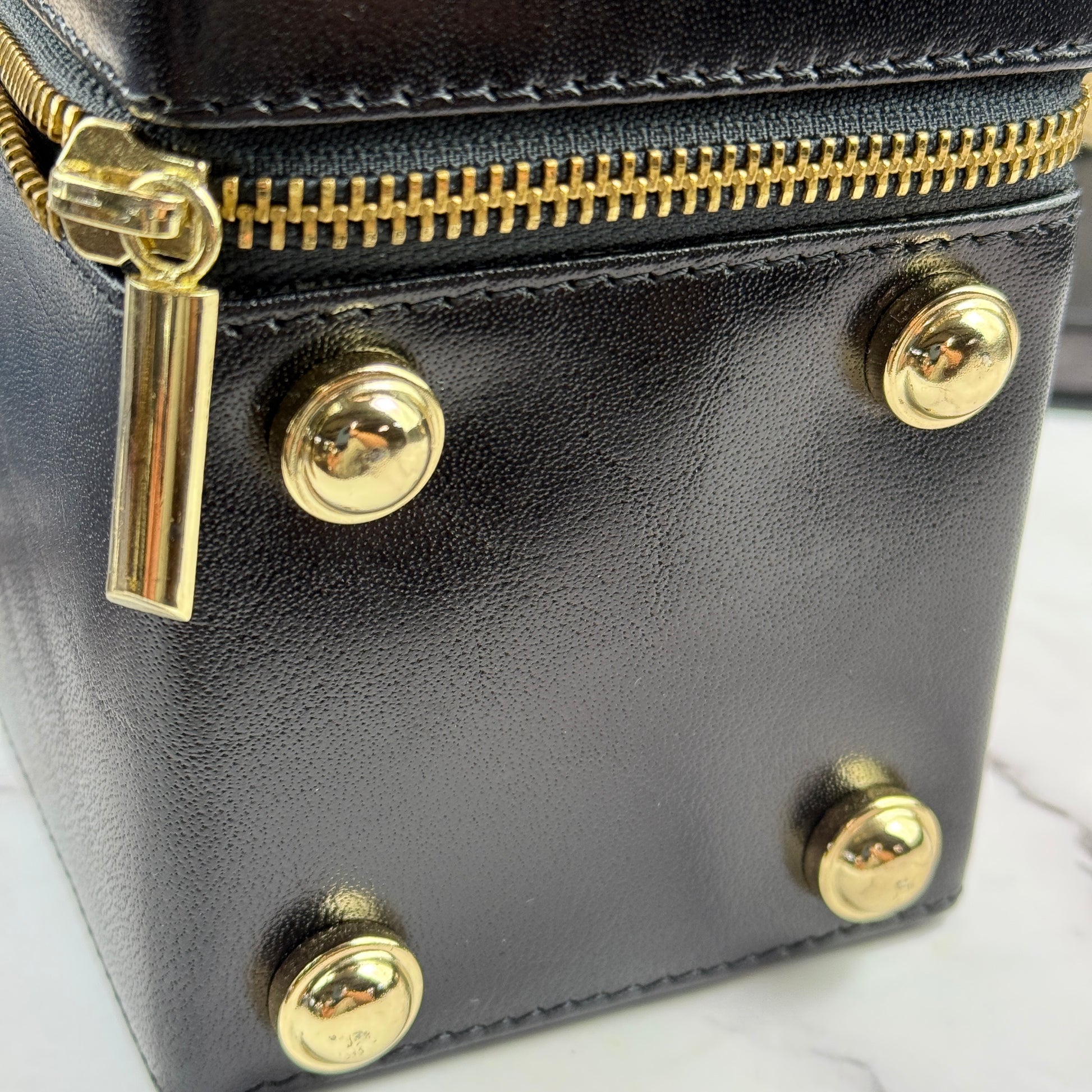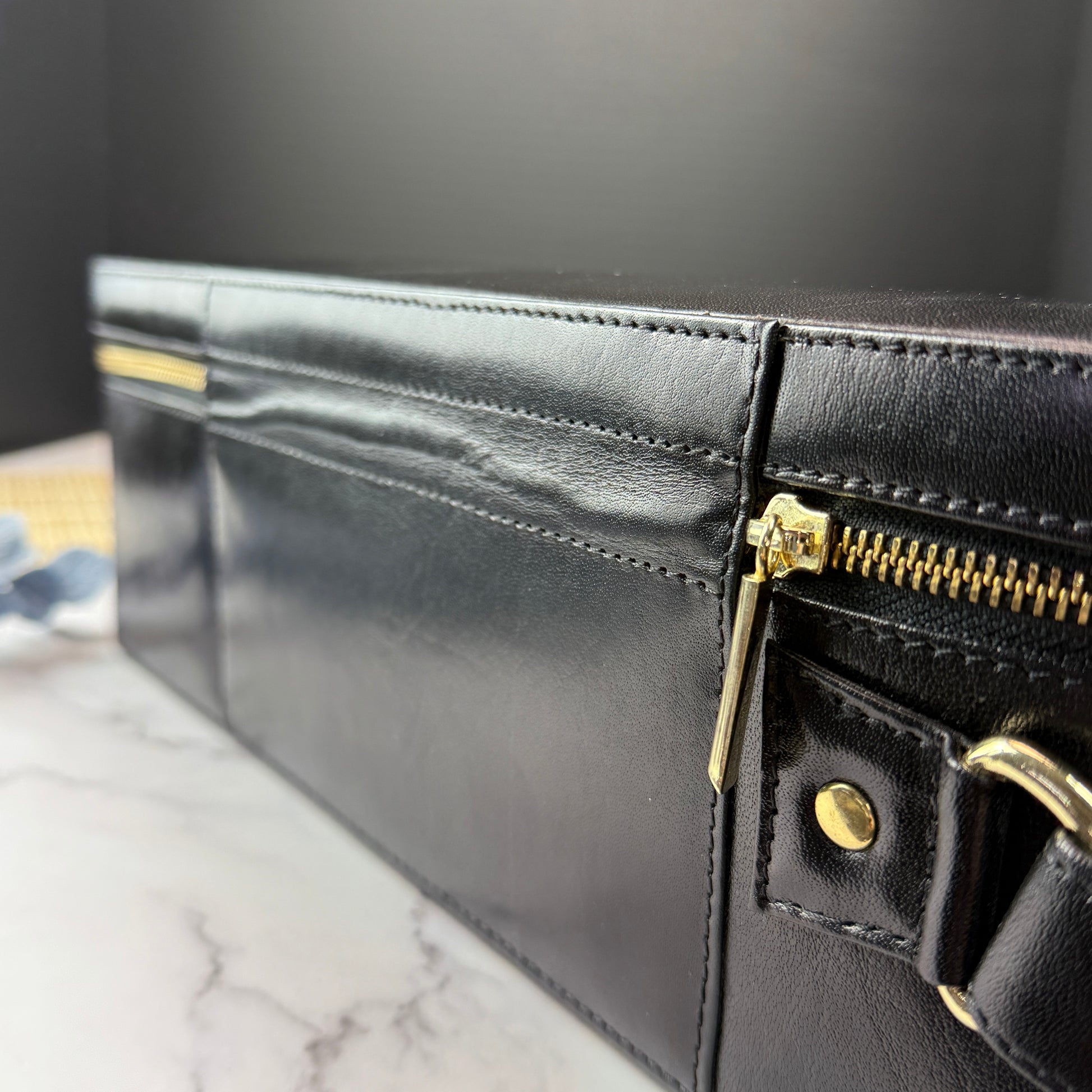 Finished with a smooth brass zipper and a sturdy carrying handle, it’s a considered companion for dinners, celebrations, and everything in between.